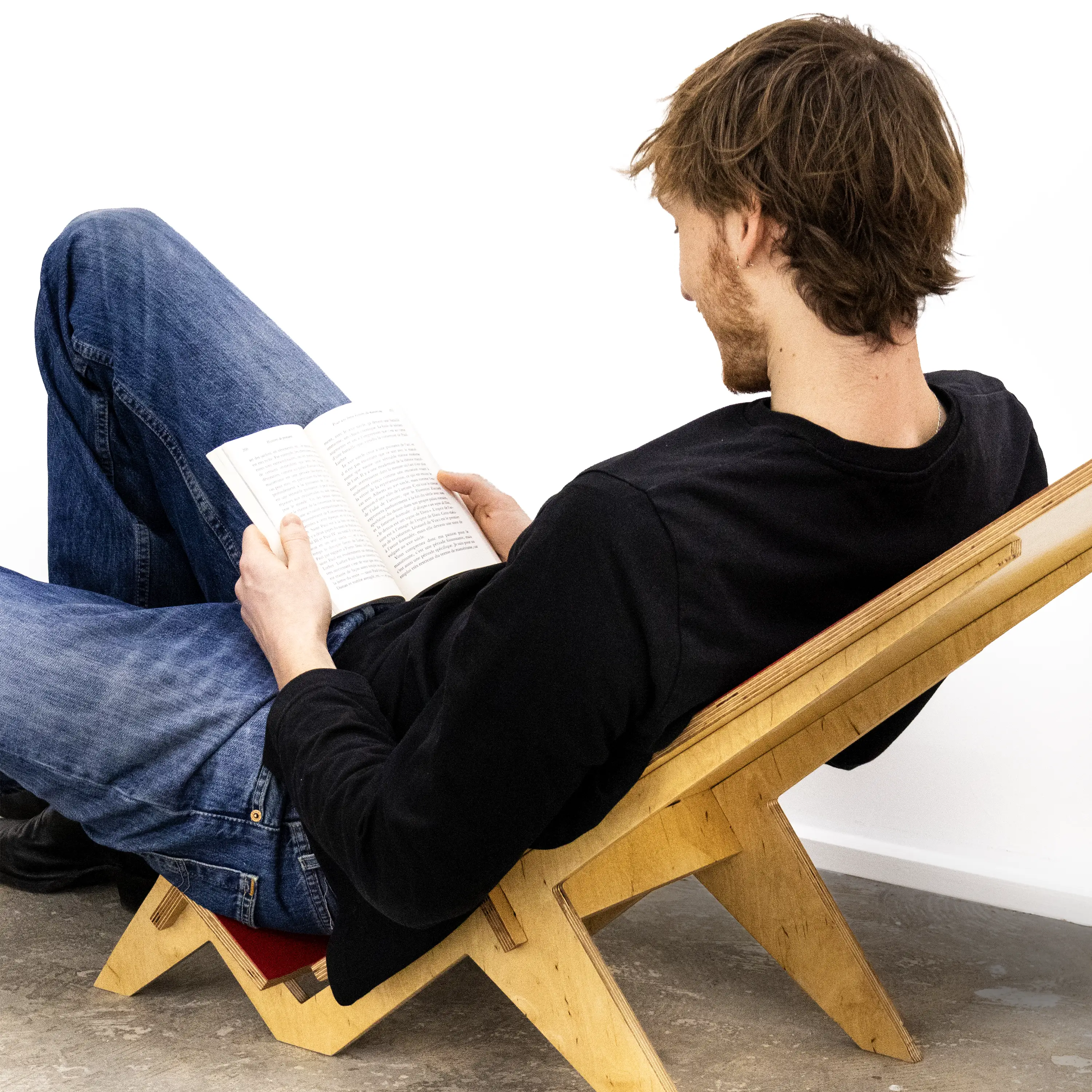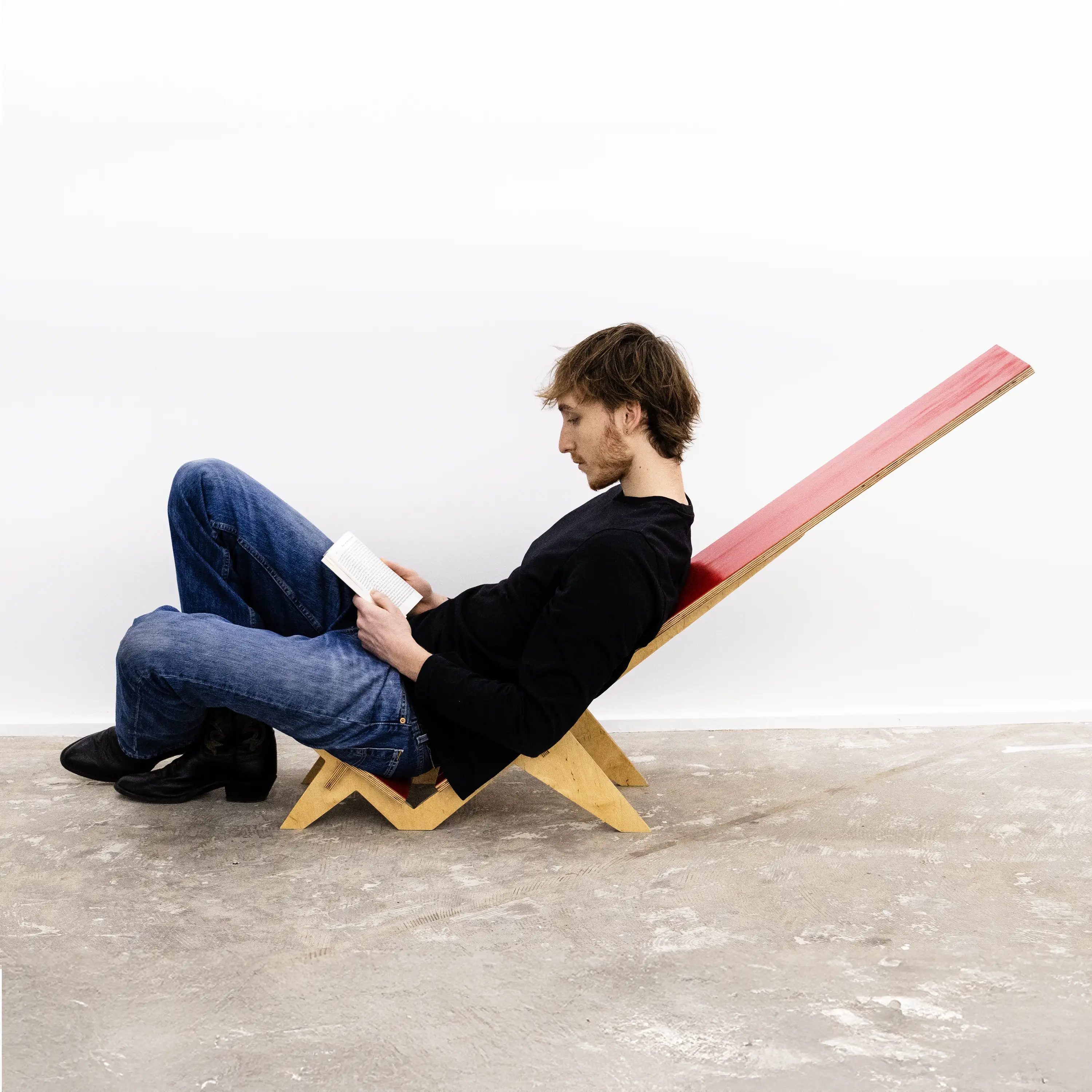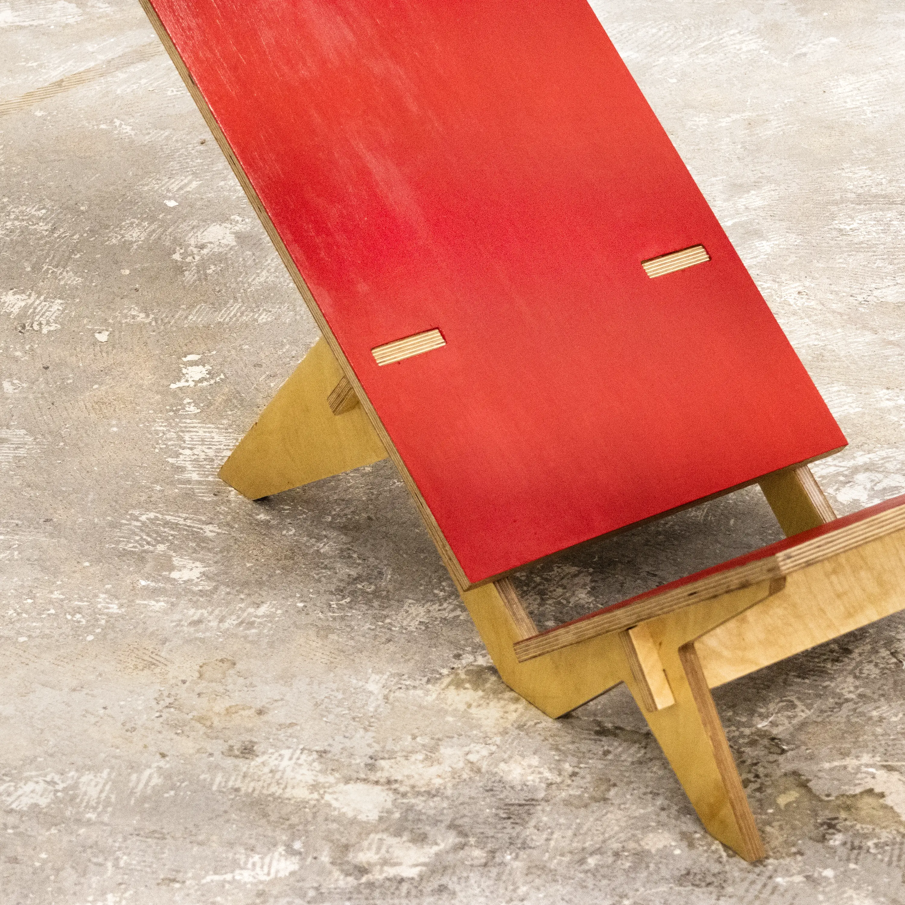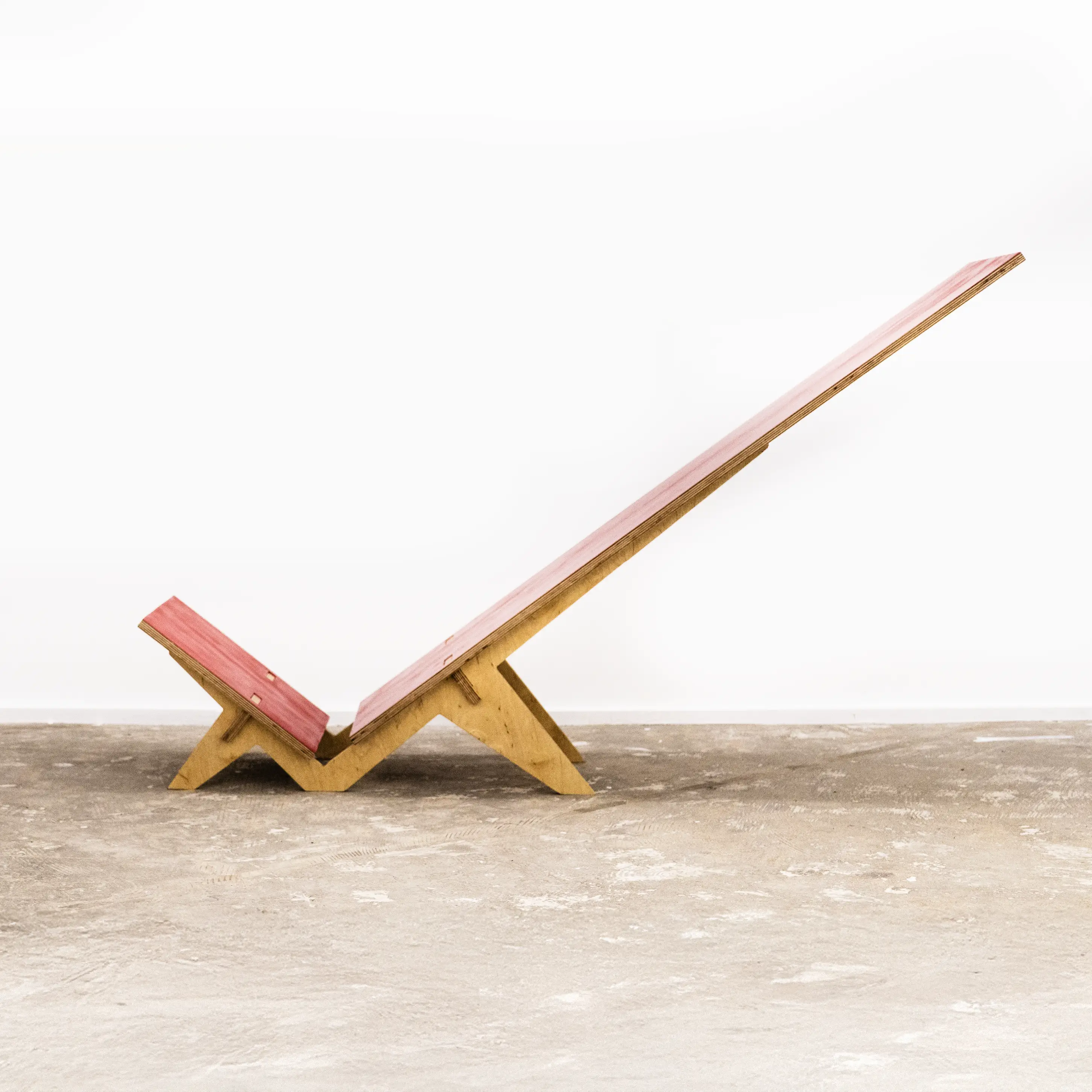 N28 is a research project focused on low to the ground seating. Its tilt is specifically designed to orient the user toward the ceiling, offering a moment of pure silence and reflection. Its shape is inspired by Palaver chairs, featuring a short seat and a particularly long backrest. Made entirely of 15mm plywood, this chair like Ntable, requires no nails, screws, or glue to be built. It is therefore mono-material, easy to produce, and simple for anyone to assemble. N28 is my 28th free project, created without any constraints or instructions.