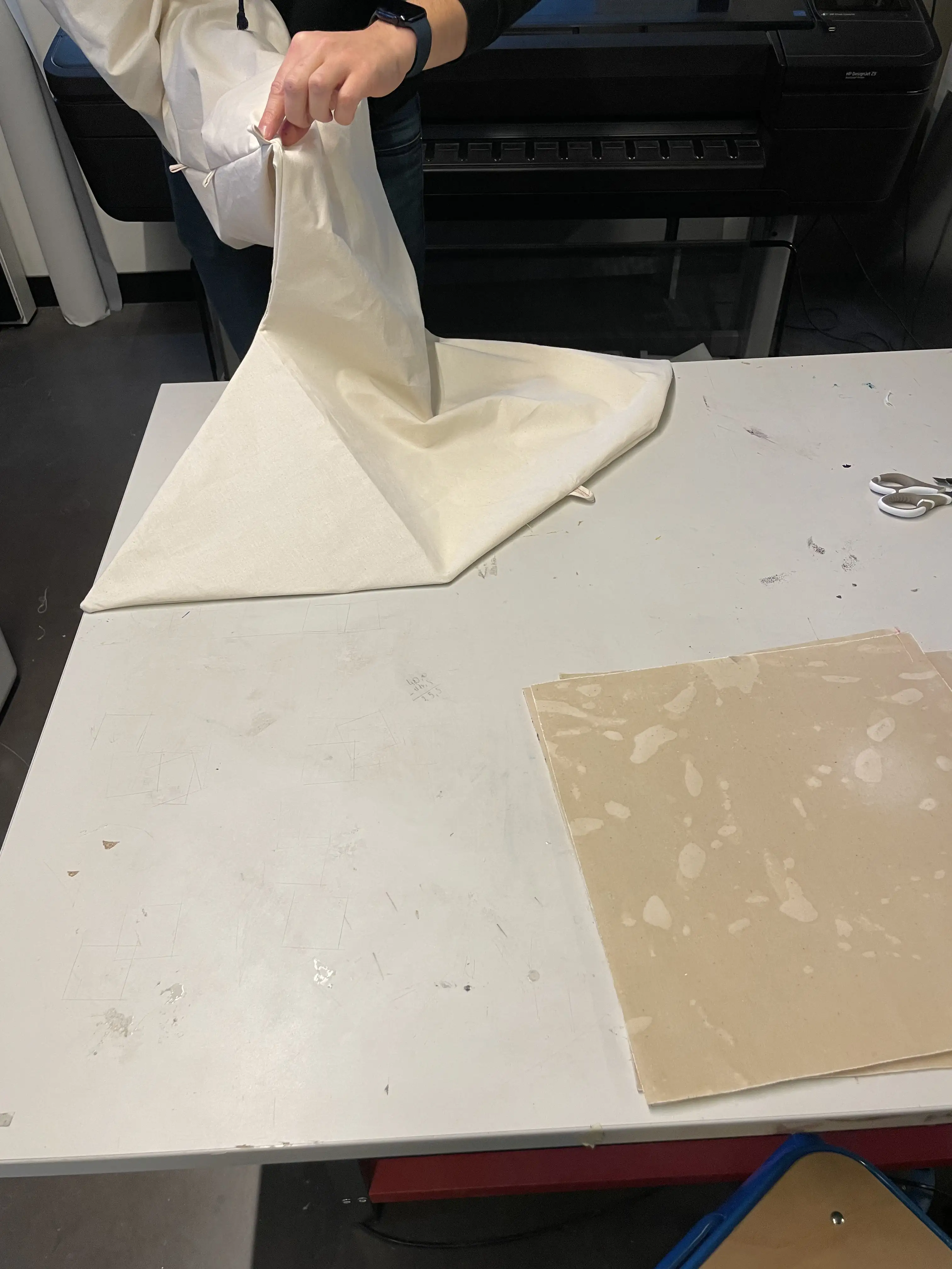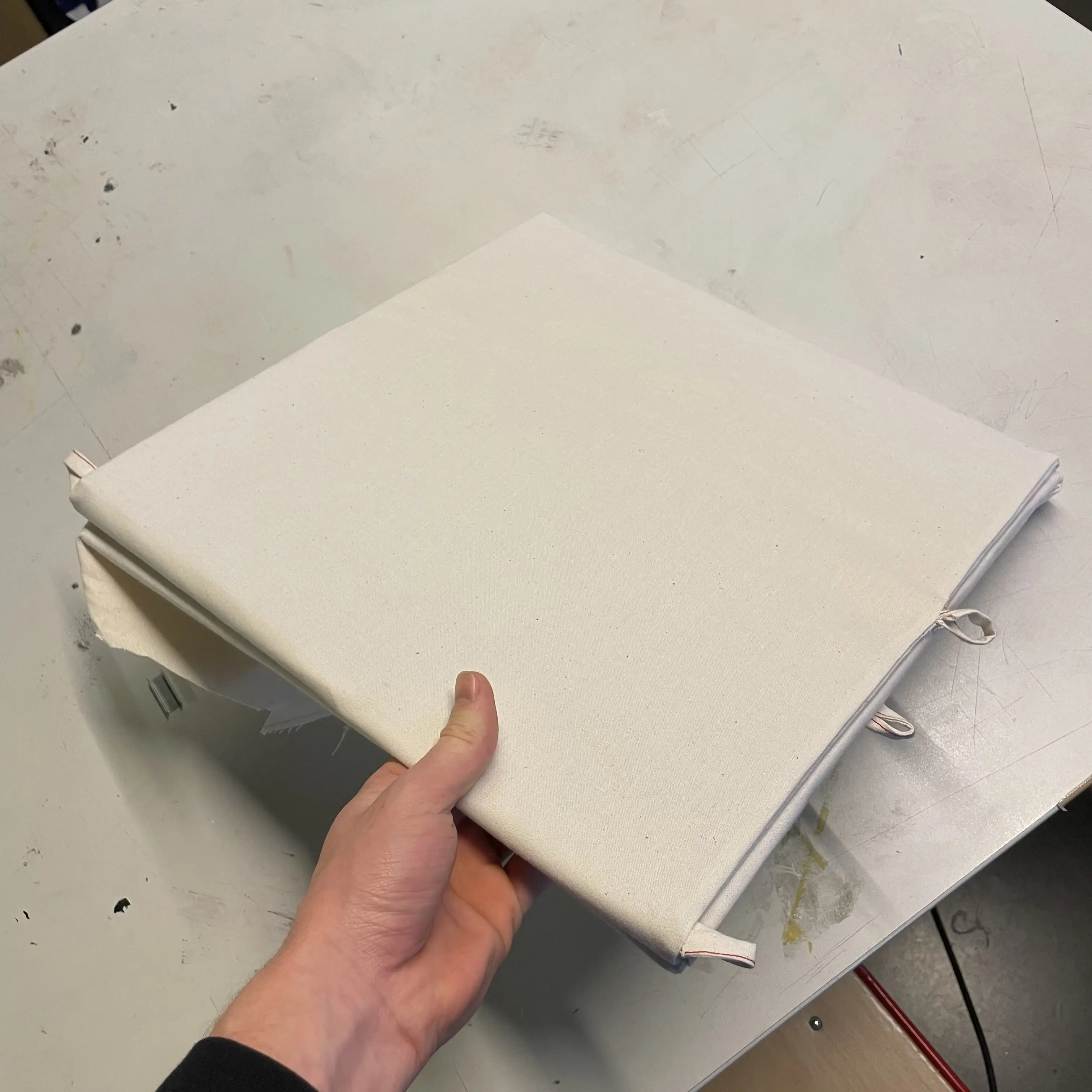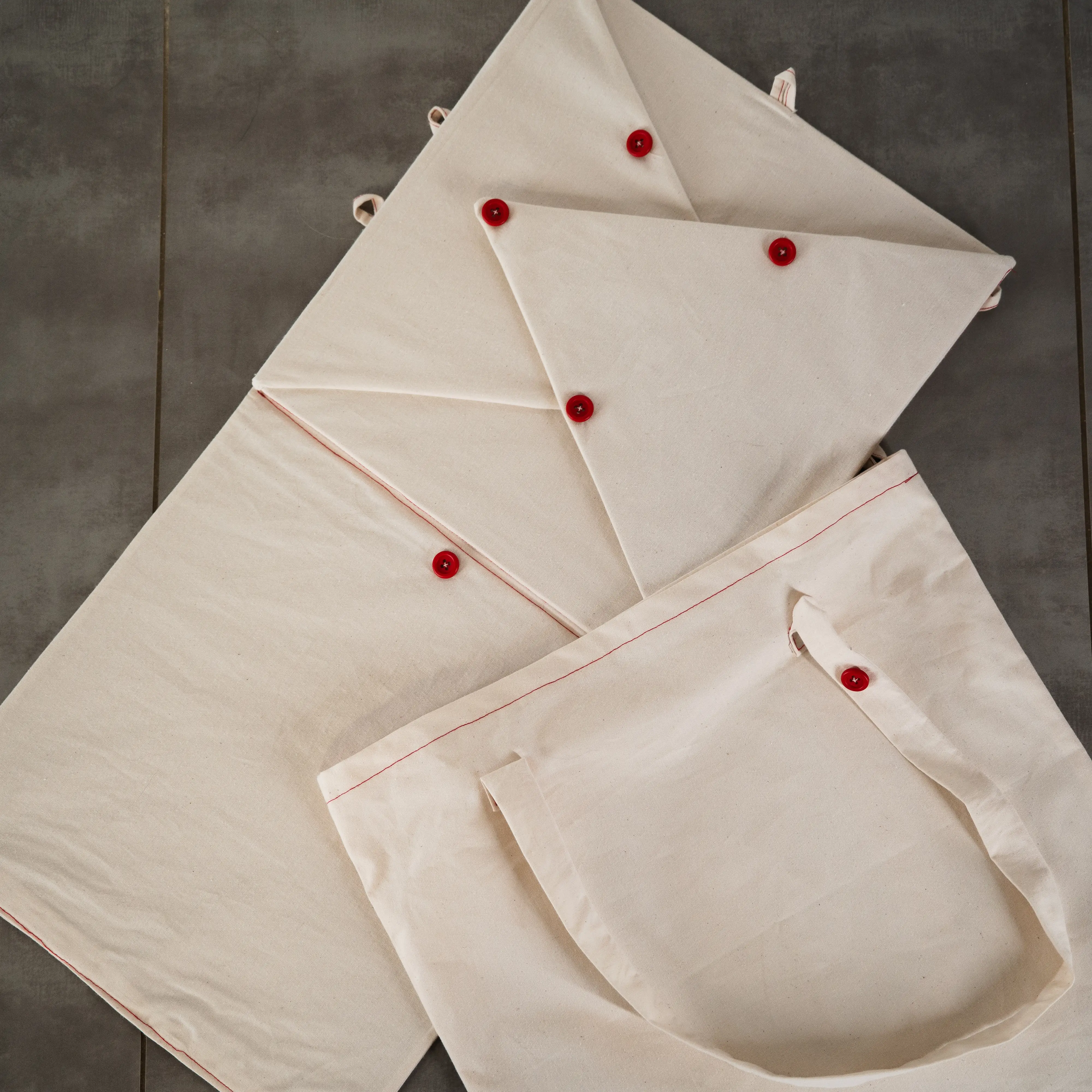 Pocket Chair is a project carried out during a textile experimentation course. I made this project with two friends, Jules Tricquet and Emma Taverna. The brief was to create an object based on the theme of “Deployment.” We came up with the idea of making a chair using resin-coated fabric. Instead of using fabric for its material qualities and flexibility, we used it as an assembly of knots; by rigidifying the base material, we created a strong, rigid panel. We therefore sewed four layers of fabric and then applied seven layers of resin. The resin-coated fabric panels were then slipped over the chair structure like a sock. It is a chair for children—a small portable playground—because once folded, it fits into a tote bag.